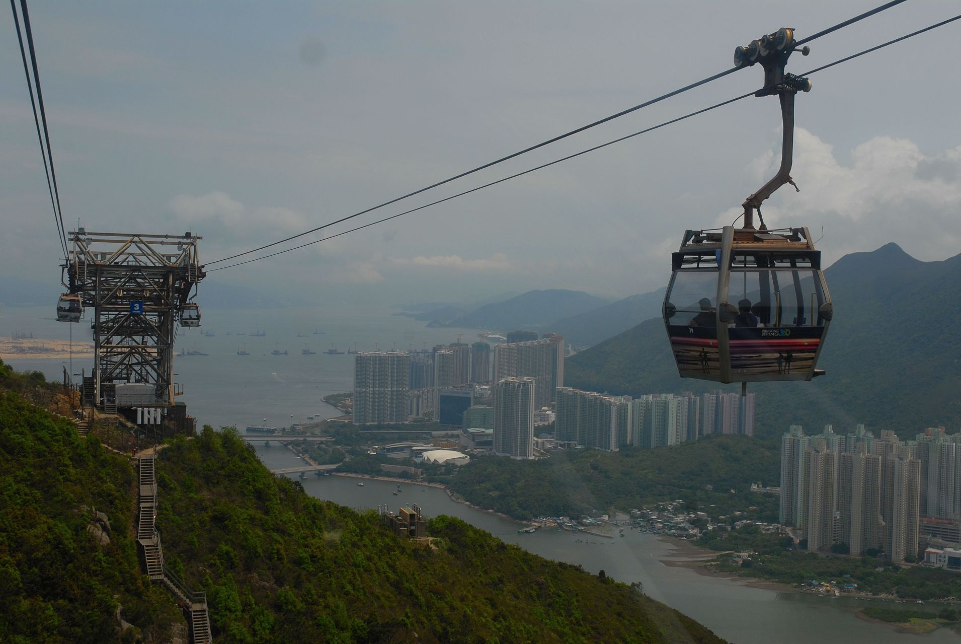 Teleférico Ngong Ping 360 rumbo a la Ngong Ping Village, en la isla de Lantau, Hong Kong.