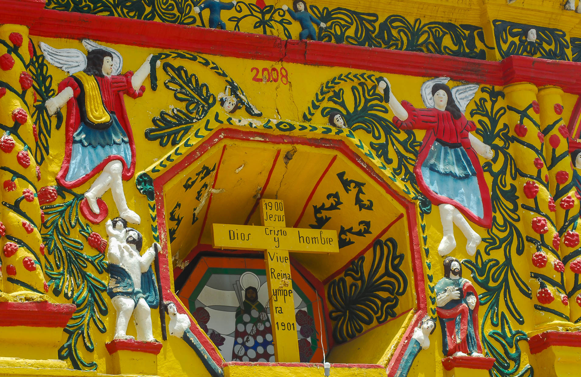Detalle de la iglesia de San Andrés Xecul, Guatemala.