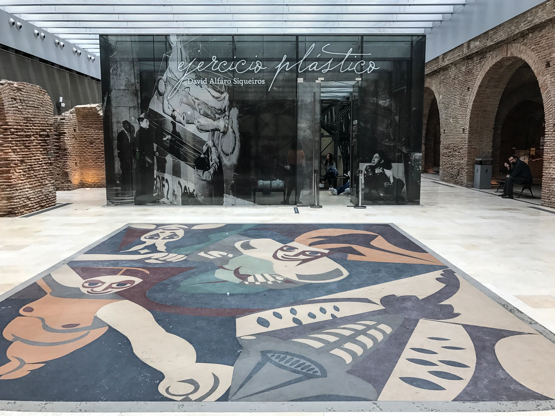 Reproducción del piso del mural de Siqueiros, Ejercicio Plástico, frente a la caja de cristal donde se encuentra el auténtico mural. Museo de la Casa Rosada (ex Museo del Bicentenario), Buenos Aires, Argentina.